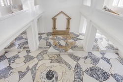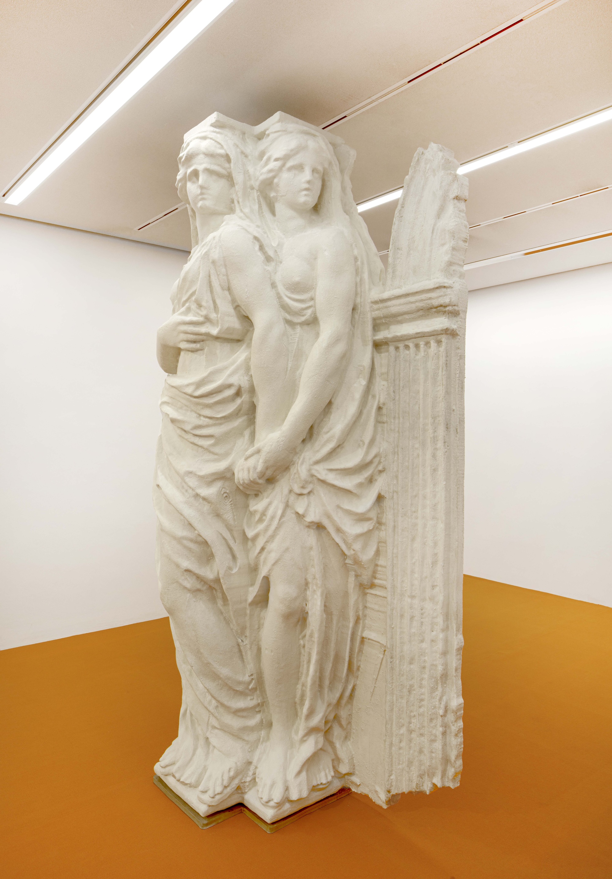 Styrofoam, acrylic plaster, pigments, wood