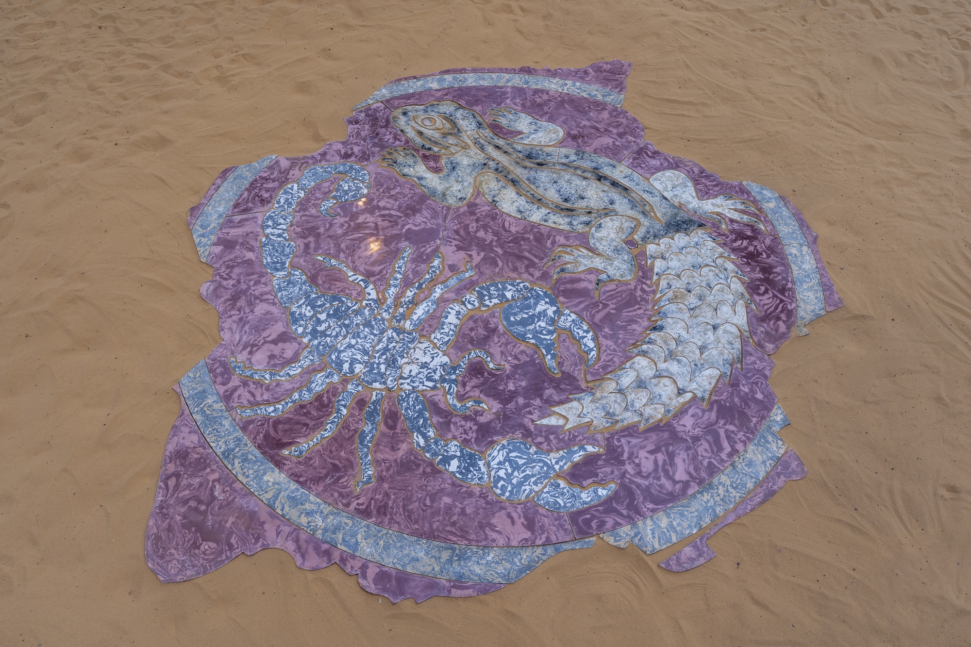 Polyethylene, acrylic plaster, pigments, sand